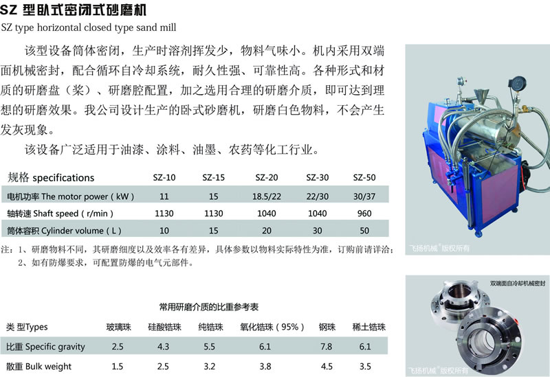 SZ型臥式密閉式砂磨機